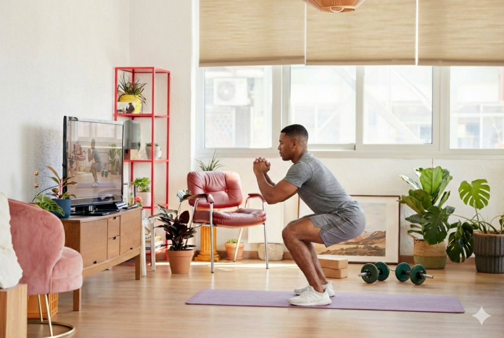 ※宅トレを行う場合は、十分に余裕のあるスペースで、シューズが難しい場合は必ず靴下を脱ぎ、裸足で行うようにしましょう。